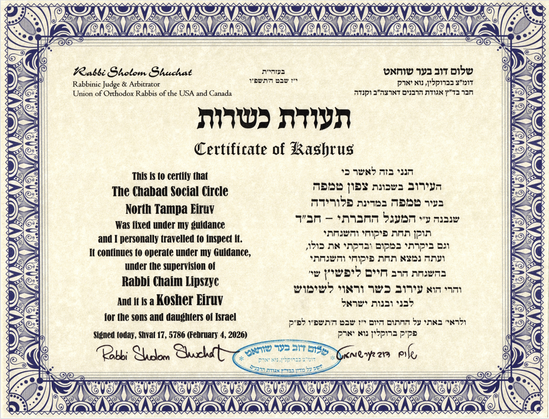 A Team of Volunteers inspects the eruv weekly to ensure it remains in proper order. When repairs are needed or the Eruv is down, we share updates through our WhatsApp group, Contact Us to be added.